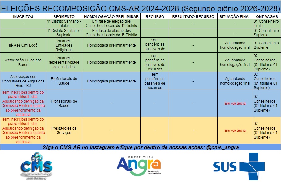 Recomposição das Vacâncias – Conselho Municipal de Saúde de Angra dos Reis (2026–2028) O Conselho Municipal d...